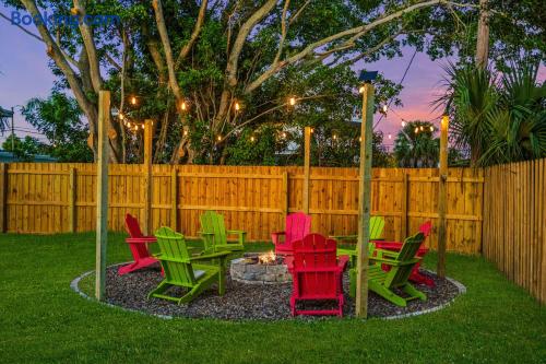 AT-A-GLANCE • 7 bedrooms | 11 beds | 5 full baths • Sleeps 21 comfortably • Heated pool & cabanas (optional heat $125/night) • Two-story outdoor slide + 3-hole mini-golf • Indoor golf simulator with Golden Tee & pool table room • 10 minutes to several Gulf beaches, dining & groceries • Driveway parking for 4 cars | Pet-friendly (see rules) THE SPACE 1) Bedroom Line-Up • BR 1 – King + ensuite double-vanity bath, 55" Smart TV • BR 2 – King, 55" Smart TV • BR 3 – Two Queens + ensuite bath, private patio • BR 4 – Triple-height bunk (2 Fulls + 1 Twin) + Nintendo Switch • BR 5 – King + workstation • BR 6 – Two Kings • BR 7 – Queen (All rooms have blackout shades, quality linens & closets.) 2) Indoor Play • Climate-controlled golf simulator room • Golden Tee arcade cabinet & board games • Separate pool-table lounge w/ 55" TV • Fast Wi-Fi, 8 Smart TVs, dedicated workspace, crib & high chair 3) Outdoor Paradise • Heated pool framed by cabanas & sun-loungers • Double-decker slide splashing into the pool • 3-hole putt-putt course, cornhole, giant Jenga & Connect 4 • Fire-pit under string lights; gas grill & outdoor dining table 4) Chef-Ready Kitchen & Dining • Stocked with cookware, seasonings, drip + Keurig coffee makers • Two fridges, large stove/oven, microwave & wine glasses • 10-seat farmhouse table + 10 breakfast-bar stools (seats 20 total) PEACE-OF-MIND DETAILS • Professionally cleaned to Airbnb’s 5-step standard • Keyless self-check-in; private entrance • Superhost support before & during your stay • Starter toiletries, plenty of towels, washer/dryer & safe GOOD TO KNOW • Check-in 4 pm | Check-out 10 am (flexible when calendar allows) • Pool heat must be for entire stay; please request 48 hrs in advance • Up to 2 crate-trained dogs allowed ($600 each, no cats) • Quiet hours 10 pm-8 am; please car-pool— max 4 cars in driveway, 1 on street WHY BOOK HERE? Space for everyone, resort-style amenities you’ll actually use, and a location that puts the best local beaches and restaurants less than 10 minutes away. Reserve your dates while they’re still open and start planning the ultimate group getaway!