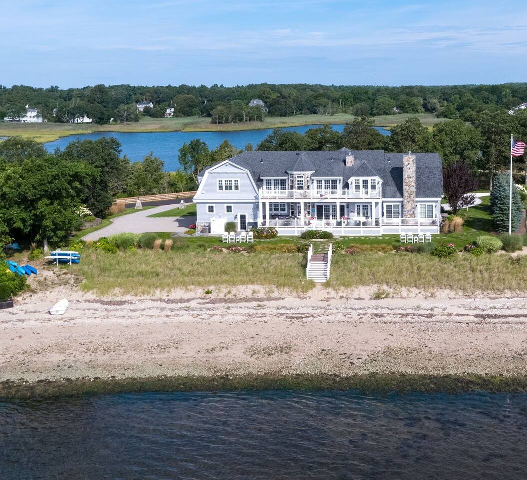 Bedrooms + Bathrooms: Indulge in comfort with 4 beautifully appointed bedrooms, each designed for relaxation. There are 2 large bunkrooms that provide a cozy and communal atmosphere, perfect for group stays. Additionally, with 6.5 bathrooms, there is plenty of space for your group Living Spaces: Enjoy breathtaking ocean views from the comfort of your living room, or step outside and feel the sand beneath your feet just footsteps from your back door. The spacious layout of the living areas ensures that everyone can gather comfortably. Kitchen: The fully-equipped kitchen is a chef's dream, ready for preparing delicious meals for your group. Whether you're cooking a feast or enjoying a casual meal, the kitchen is designed to meet your culinary needs. For kids: - 3 pack & play cribs - Bassinet - High chair Outdoor Oasis: Step onto the beach, overlooking the harbor, and let the sound of the waves and the gentle sea breeze surround you. The outdoor space is perfect for lounging, dining al fresco, and creating lasting memories with your loved ones. Beach chairs, yard games, and bikes all available for your convenience! Pet Friendly: Bring up to 2 pets for a flat fee. Other things to note: Check-in is at 4 pm Check-out is at 10 am