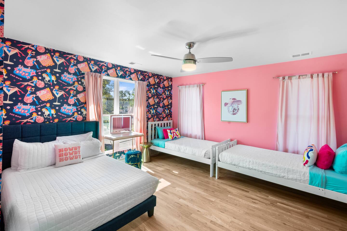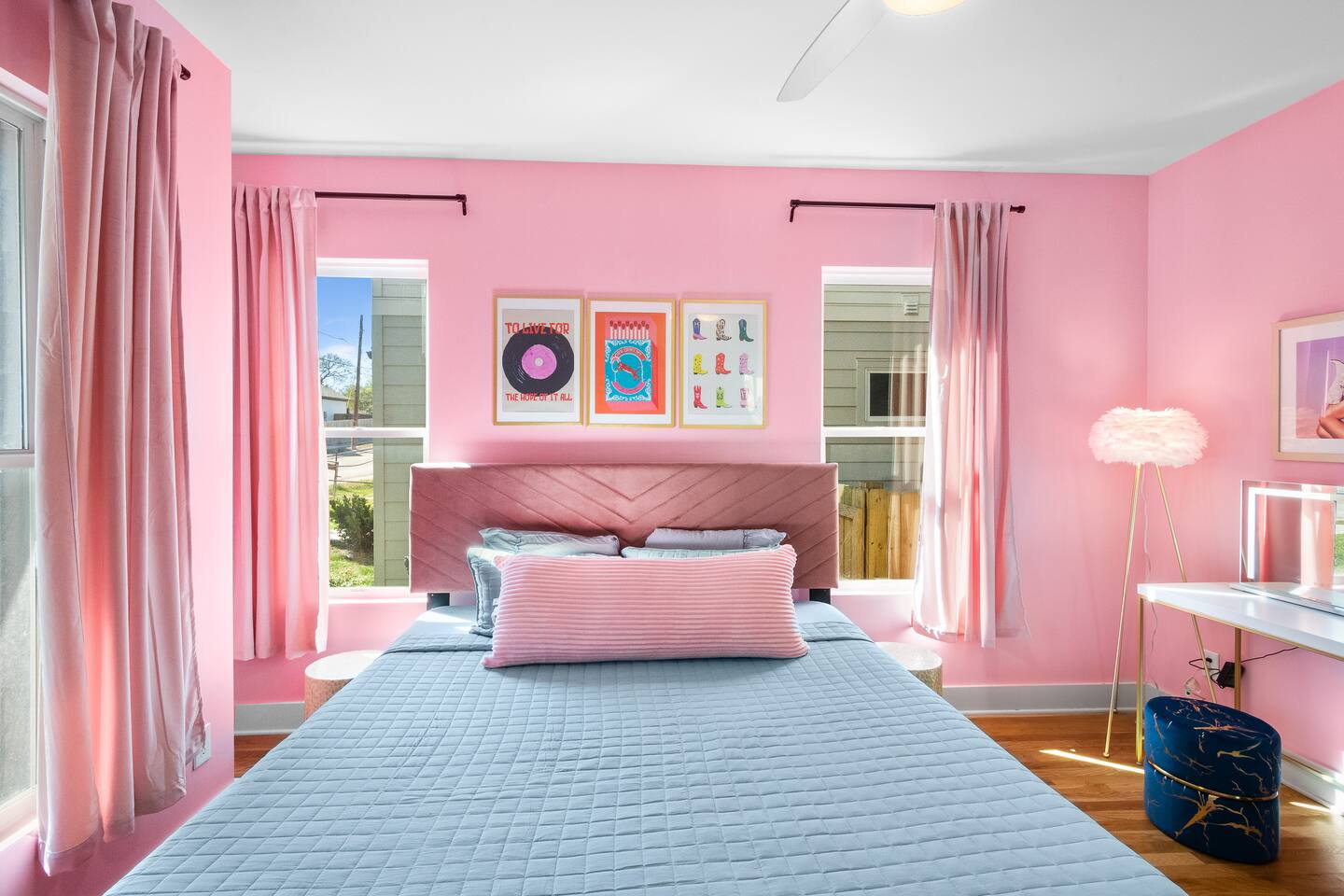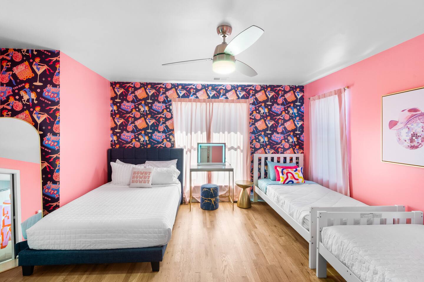 Letโs go bach party! This chic, luxe 2022 home is just 10 mins from downtown and sleeps 12 with plenty of parking! Strike a pose at the flower wall ๐ธ and hang in the bach designed open living space, kitchen with huge island, and dining table for drinking games. Hi Speed Wi-Fi and smart TVs with streaming throughout. 3 dreamy bedrooms and lux pullout couch in living room all with plush linens. 4 full beautiful bathrooms. Made for making memories. No smoking ๐ญ or parties ๐.