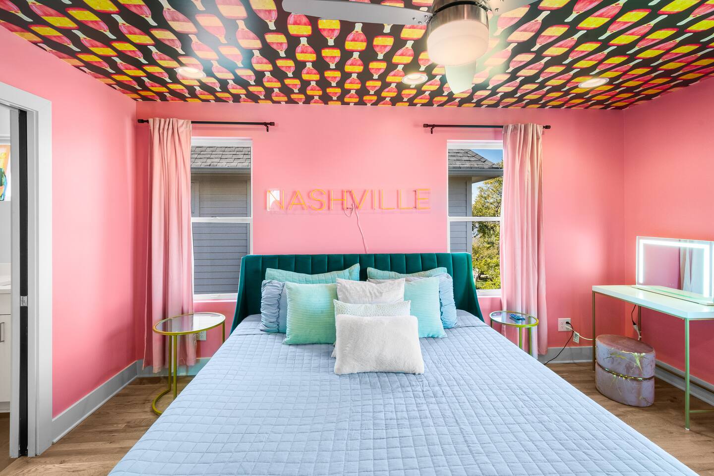 Welcome to Your Ultimate Bach Trip Getaway in Nashville! ๐ This modern, luxurious vacation rental was built in 2022 and is just a quick 10-minute Uber from downtown Nashville and the world-famous Broadway strip ๐ถ. Whether you're planning a bachelorette party, birthday weekend, or a fun girls' getaway, this stylish home is the perfect base for exploring Music City! ๐ก Prime Location Situated in a quiet, safe neighborhood, you're minutes away from top Nashville attractions like Broadway, Nissan Stadium, Bridgestone Arena, the Grand Ole Opry, Honky Tonks, The Gulch, and popular shopping and dining spots. โจ Top Features & Amenities ๐ธ Insta-Worthy Decor: Flower wall in the living room + unique photo-ready designs in every room ๐ถ Fast Wi-Fi throughout makes remote work a breeze ๐ Makeup Stations in Every Bedroom: Perfect for getting ready together ๐ณ Fully Stocked Kitchen: Modern appliances + everything needed for group meals ๐๏ธ Open Floor Plan: Spacious layout perfect for socializing ๐๏ธ 3 Unique Bedrooms + 4 Full Bathrooms: Sleeps up to 12 guests comfortably ๐ ฟ๏ธ Free Parking: Garage + driveway for multiple vehicles ๐บ Smart Roku TVs Throughout: Stream Netflix & more ๐งบ Comfort Essentials: Plush memory foam beds, high-quality linens, fresh towels ๐ Keyless Entry: Easy and secure self-check-in ๐งผ Washer & Dryer: Ideal for extended stays ๐บ๏ธ Nearby Landmarks Broadway โ 10 mins | The Gulch โ 10 mins | Ryman Auditorium โ 11 mins | Johnny Cash Museum โ 11 mins | Country Music Hall of Fame โ 12 mins | Vanderbilt University โ 6 mins | Grand Ole Opry โ 20 mins | Nashville Zoo โ 20 mins โฐ Check-in: 4 PM | Check-out: 10 AM Pet Friendly: Up to 2 pets allowed for a 500$ fee. No smoking ๐ญ, no parties ๐โjust unforgettable Nashville memories!